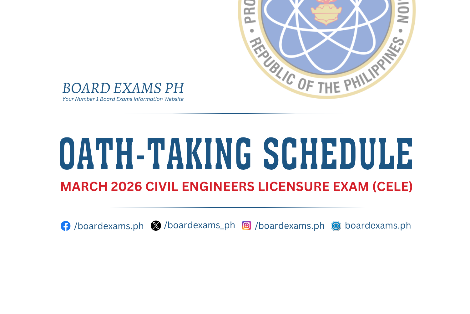 OATH-TAKING SCHEDULE: November 2025 Civil Engineers Licensure Exam (CELE)November 28, 2025Board Exams PH