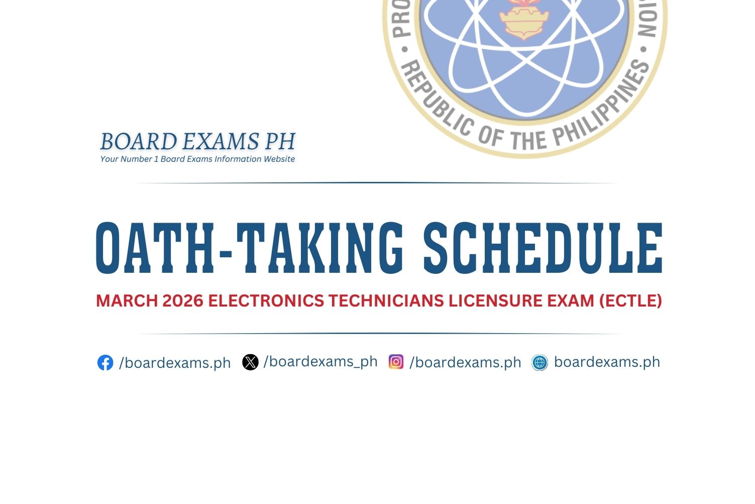 OATH-TAKING SCHEDULE: October 2025 Electronics Technicians Licensure Exam (ECTLE)October 24, 2025Board Exams PH