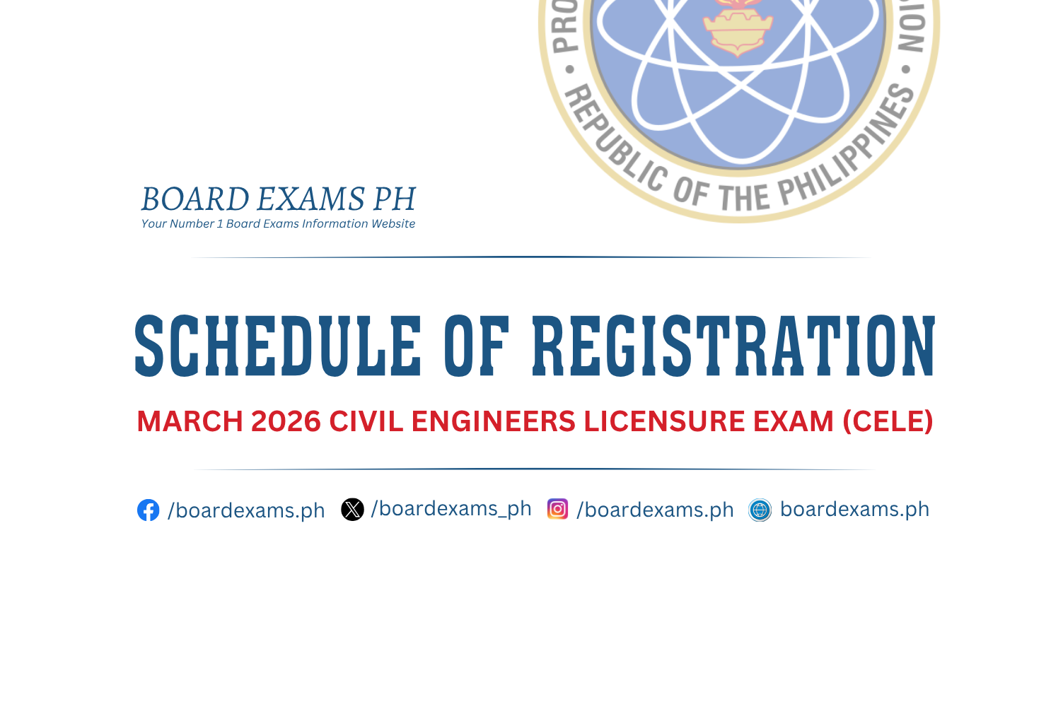 SCHEDULE OF REGISTRATION: November 2025 Civil Engineers Licensure Exam (CELE)November 28, 2025Board Exams PH