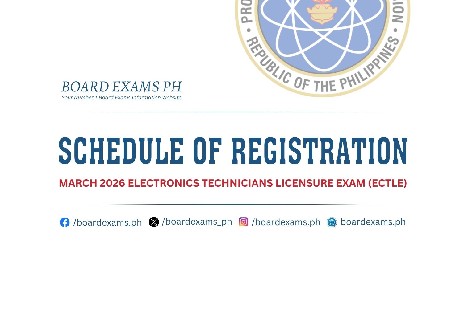 SCHEDULE OF REGISTRATION: October 2025 Electronics Technicians Licensure Exam (ECTLE)October 24, 2025Board Exams PH