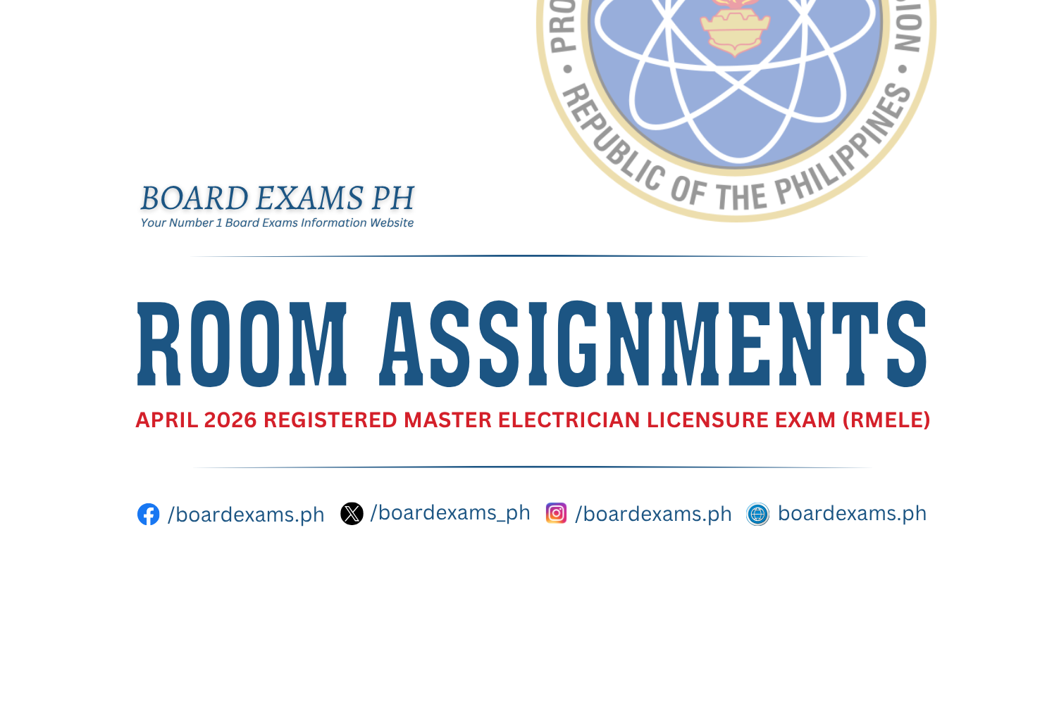 ROOM ASSIGNMENTS: April 2024 Registered Master Electrician Licensure Exam (RMELE)April 7, 2024Board Exams PH