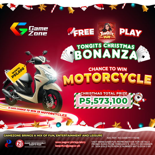 The Tongits Christmas Extravaganza is set to captivate players with its generous giveaway of 39 motorcycles over 39 days. Running from late November through New Year’s Eve, this event will announce a lucky Yamaha Mio Gravis winner each night at 10 PM. Participation is straightforward – players simply need to place a bet on any GameZone game to enter the promotion. This event not only offers substantial prizes but also adds an element of excitement to daily gameplay during the holiday season.