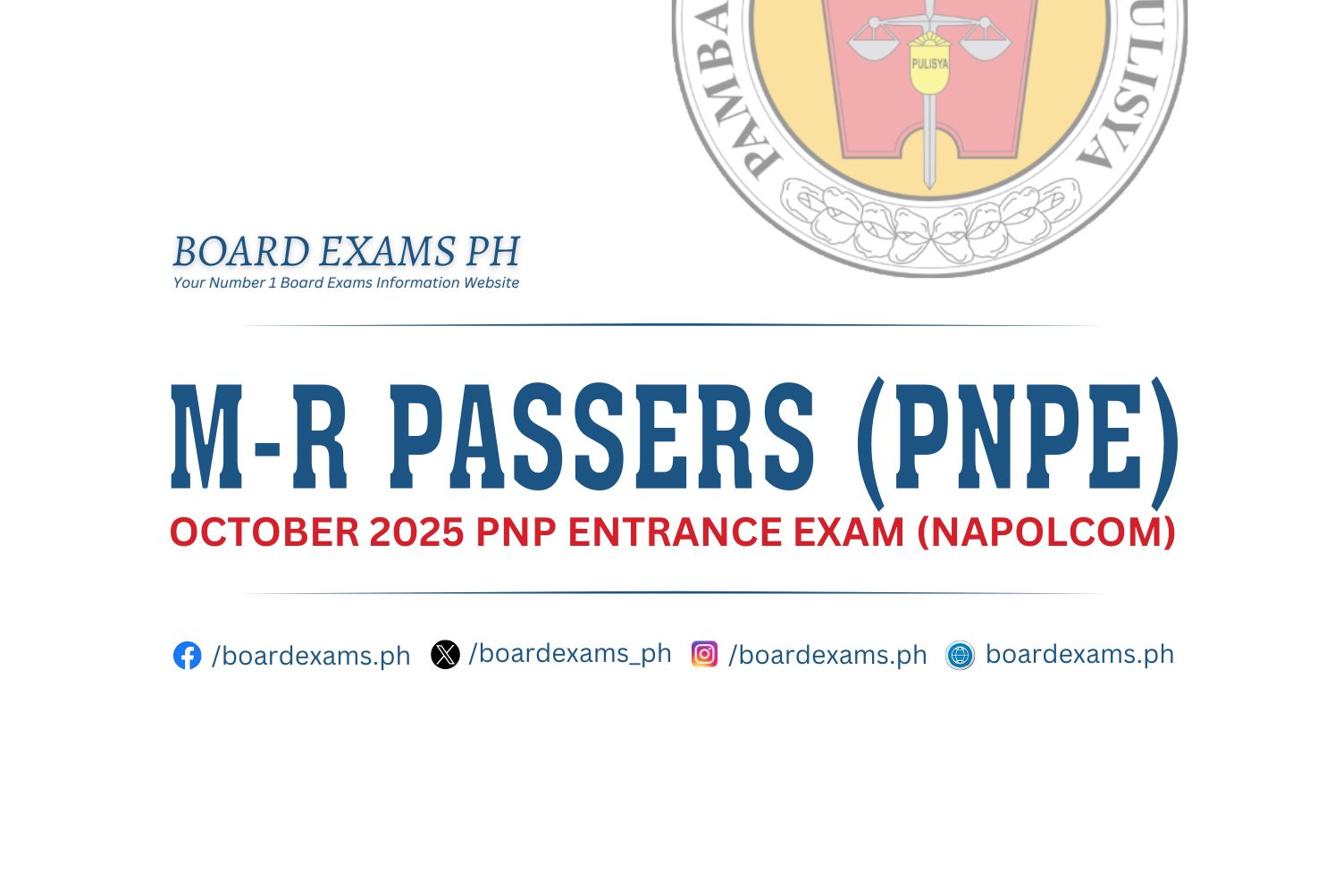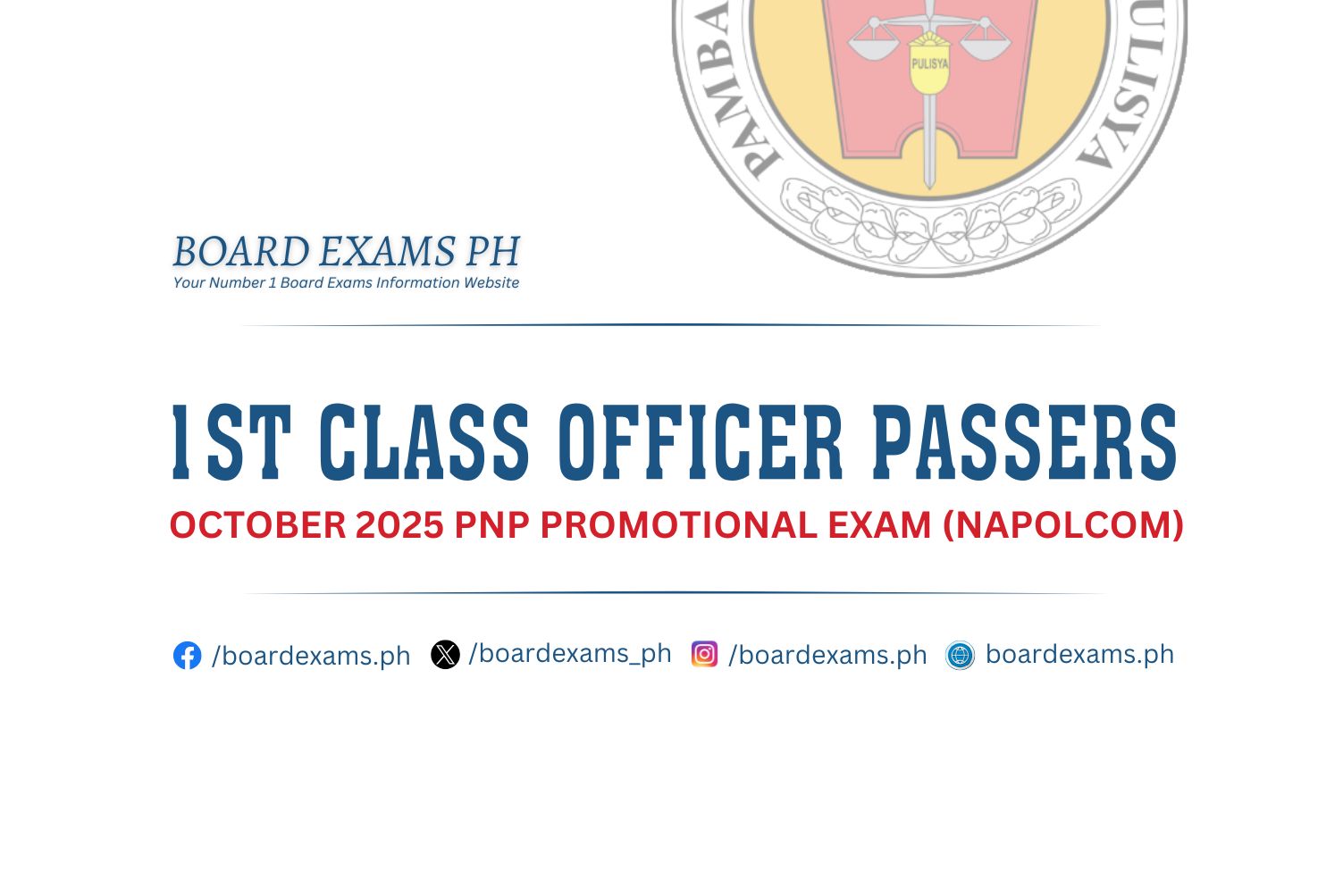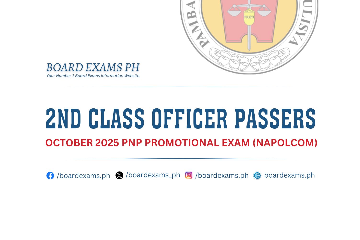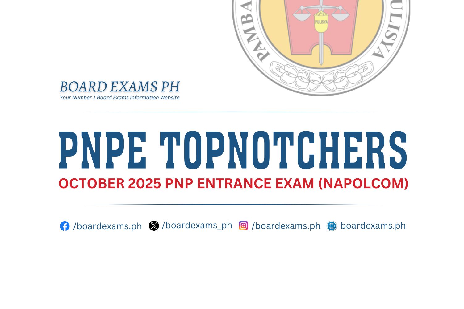 TOPNOTCHERS (4th Class Officers): April 2025 PNP Promotional Exam (PROMEX)June 18, 2025Board Exams PH