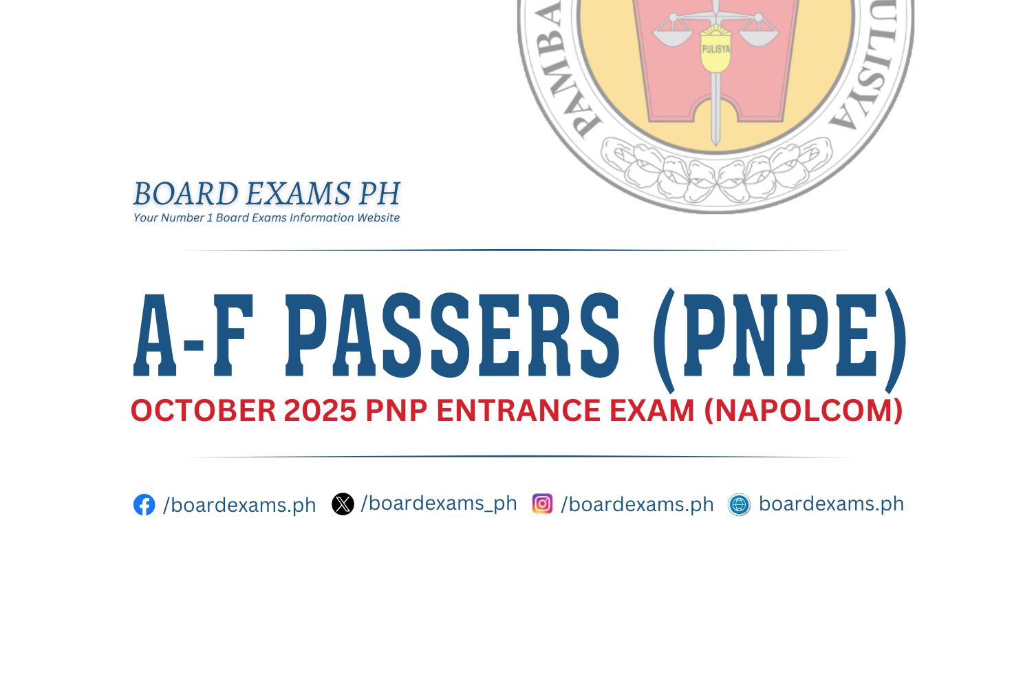 NAPOLCOM EXAM RESULTS: October 2025 PNP Entrance Exam & PNP Promotional Exam List of PassersOctober 28, 2025Board Exams PH