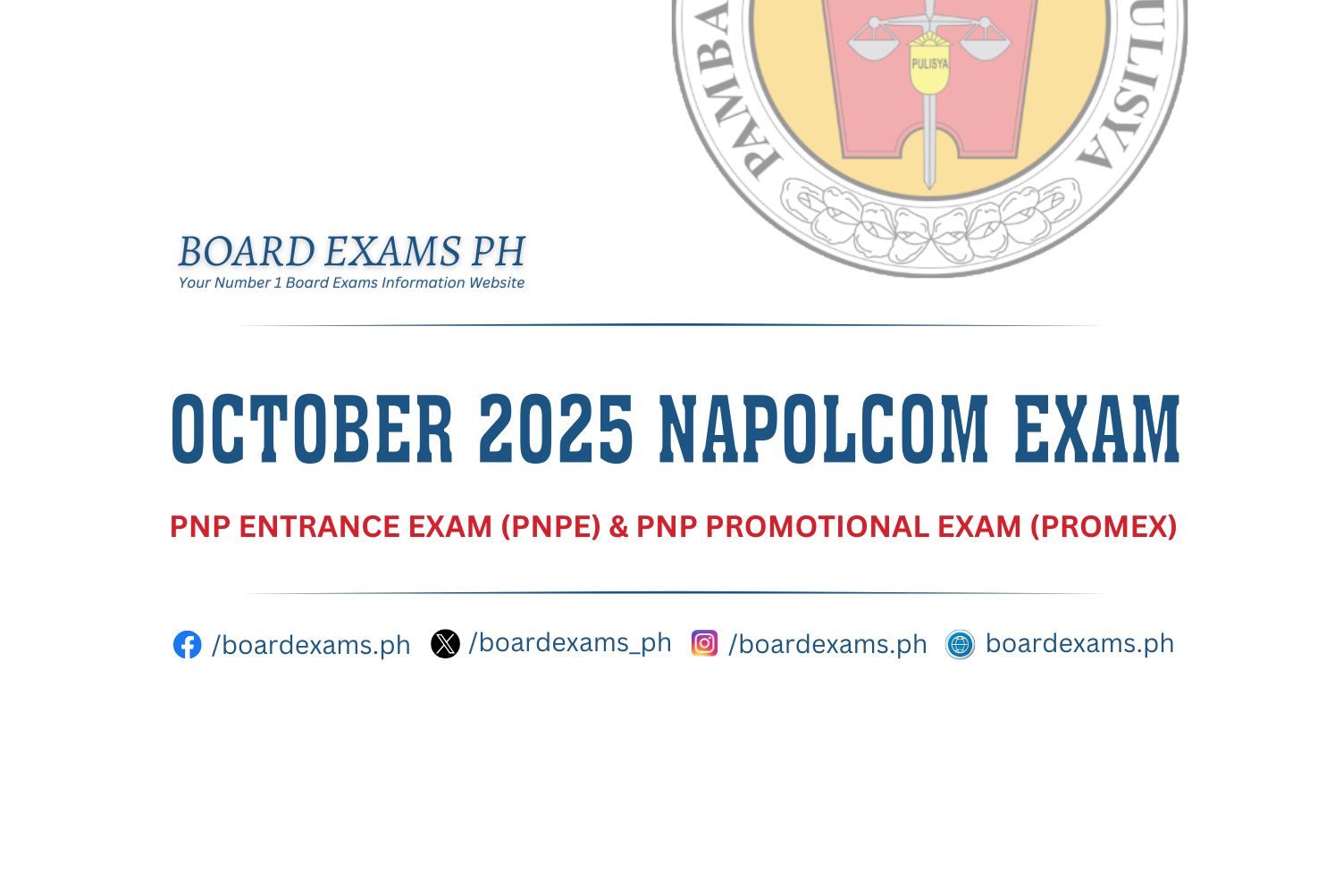 NAPOLCOM EXAM RESULTS: October 2025 PNP Promotional Exam (PROMEX) List of PassersOctober 28, 2025Board Exams PH