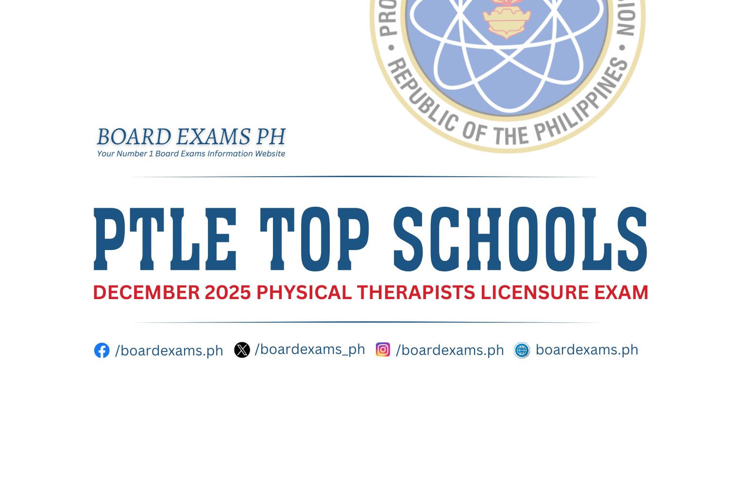 To keep updated on the official results and other updates regarding the conduct of the December 2025 Physical Therapists Licensure Exam (PTLE), we advise our visitors to bookmark this page, visit PRC’s official website, follow us on our social media pages: