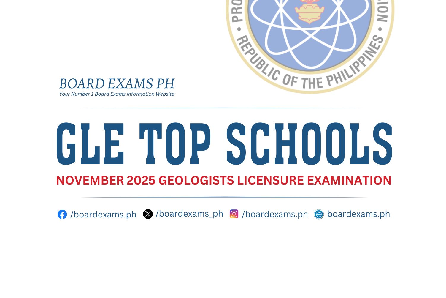 To be updated on the official results and other updates regarding the conduct of the November 2025 Geologists Licensure Exam (GLE), we advise our visitors to bookmark this page, visit PRC’s official website, follow us on our social media pages: