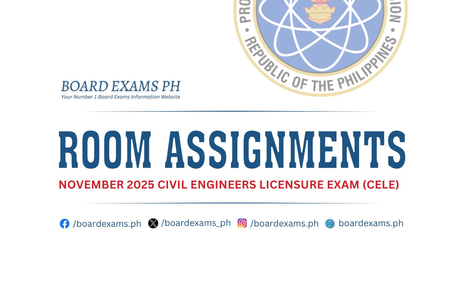 ROOM ASSIGNMENTS: November 2025 Licensure Exam for Teachers (Region 1, 2 & CAR)November 21, 2025Board Exams PH