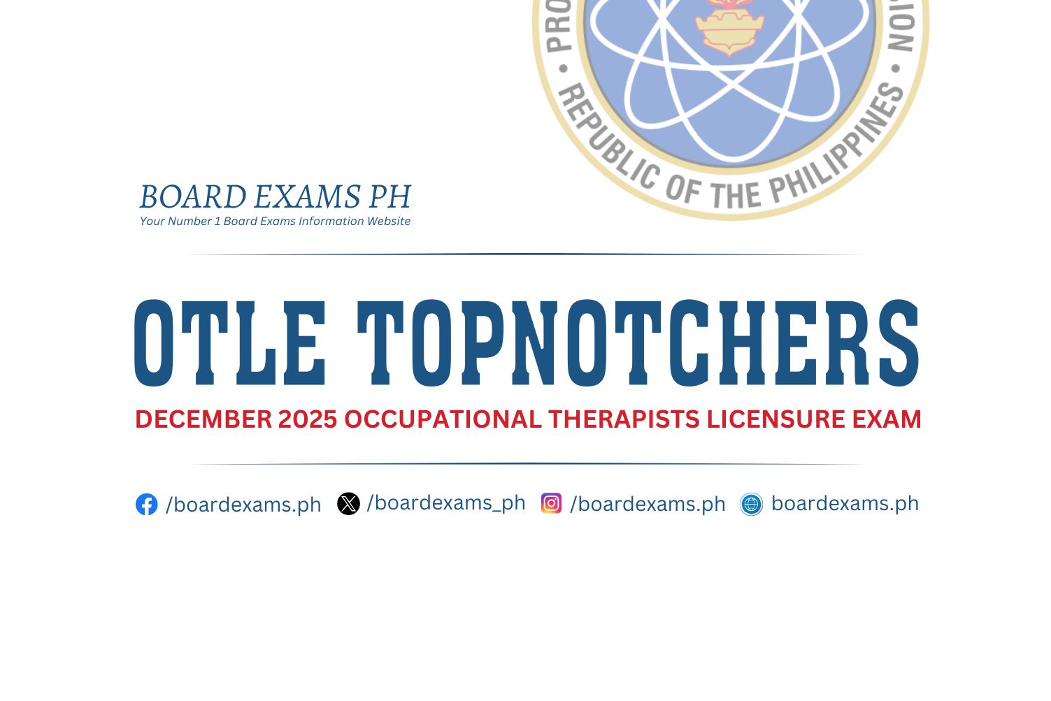 To keep updated on the official results and other updates regarding the conduct of the December 2025 Occupational Therapists Licensure Exam (OTLE), we advise our visitors to bookmark this page, visit PRC’s official website, follow us on our social media pages:
